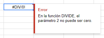 Este error lo encuentro que se explica por sí mismo. Se refiere a que la fórmula devolvería como resultado un la división de algo por cero.